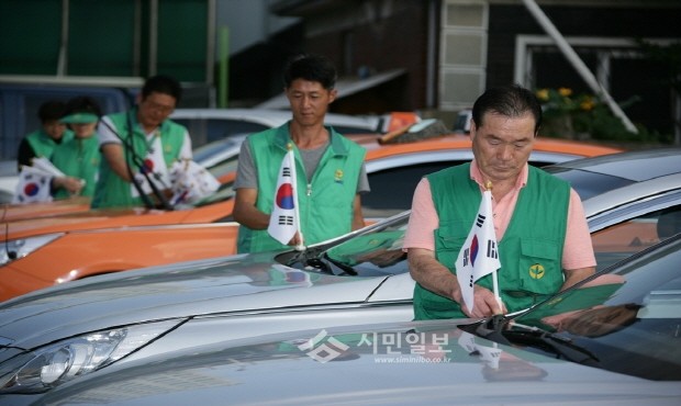 [시민일보]지난 1일 서울 마포구는 국군의 날·개천절·한글날을 맞이해 '10월 나라사랑 태극기 달기 운동'을 펼쳤다. 사진은 새마을운동 마포구지회 회원들이 자동차에 태극기를 달고 있는 모습.