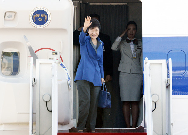 박근혜 대통령이 아시아·태평양경제협력체(APEC) 정상회의와 동남아시아국가연합(ASEAN)+3(한·중·일) 정상회의가 열리는 인도네시아와 브루나이를 방문하기 위해 6일 오전 경기도 성남시 서울공항에서 출국하고 있다.