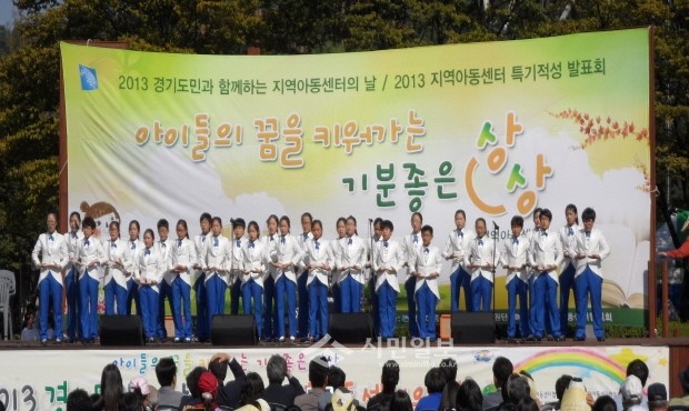 [시민일보]경기도(도지사 김문수)는 지난 3일 고양시 일산구 문화공원에서 지역아동센터 이용아동 및 종사자 등 300여명이 참가한 '2013년도 경기북부 지역아동센터의 날' 행사를 개최했다. 사진은 특기적성 발표회에서 합창을 하고 있는 아이들의 모습.