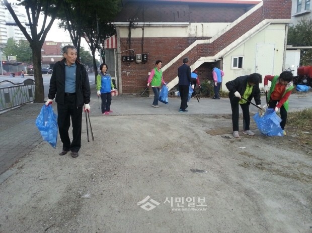지난 5일 동두천시 불현동의 9개 사회단체가 20일 개최될 국제MTB대회를 대비해 지역내 종합운동장 및 이면도로의 쓰레기를 수거하는 등 환경정화활동을 실시했다. 사진은 청소를 진행 중인 사회단체 회원들의 모습.