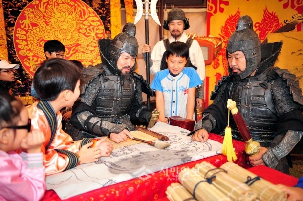 [시민일보]지난 6일 서울 송파구 올림픽공원에서 백제고분제, 송파산대놀이 등 백제의 모든 것을 망라한 '제13회 한성백제문화제'가 막을 내렸다. 사진은 '한성백제문화제에서 열린 백제군영제에서 아이들이 체험을 하고 있는 모습.