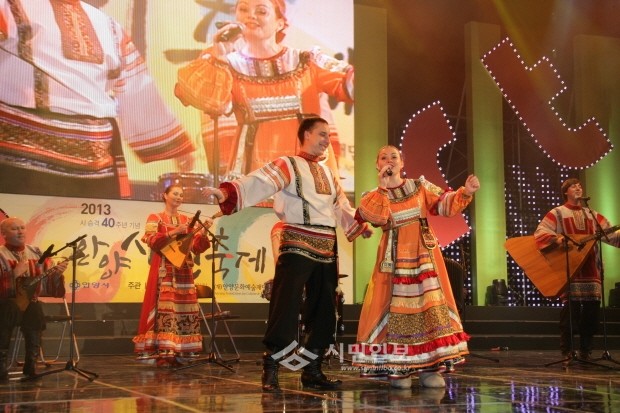 경기 안양시가 지난 4~6일 시 승격40주년을 기념하는 축제를 열었다. 사진은 안양시와 꾸준히 교류를 한 러시아 울란우대시에서 온 축하사절단이 4일 열린 개막행사에서 러시아 전통 공연을 하고 있는 모습.