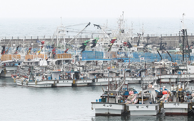7일 오후 제주시 제주항에 제24호 태풍 ‘다나스(DANAS)’의 북상에 대피해 어선들이 대피해 있다.