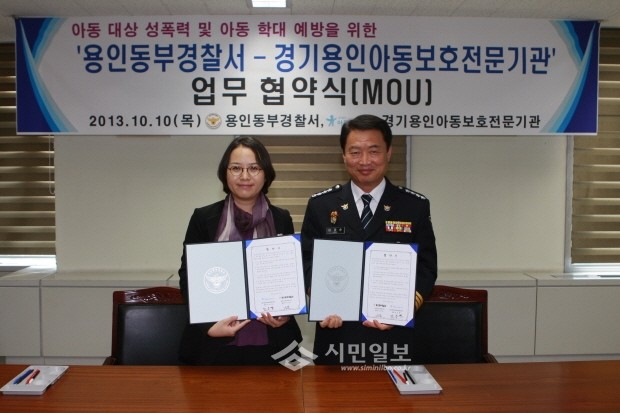 [시민일보]경기 용인동부경찰서는 10일 경기용인아동보호전문기관과 ‘아동 대상 성폭력 및 아동 학대 예방을 위한 업무협약(MOU)’을 체결하고 공동협력체계를 구축하기로 했다. 사진은 이강순 용인동부경찰서장(우)과 안소영 관장(좌)의 협약식 모습.