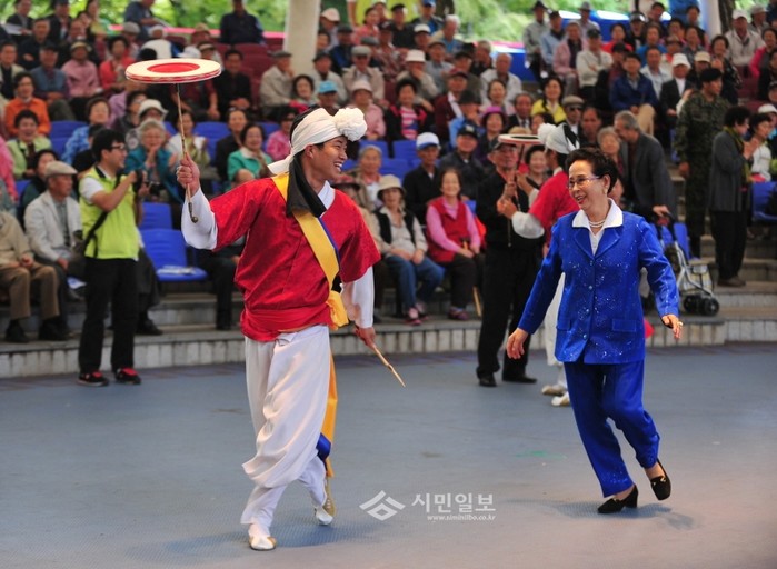 [시민일보]지난11일 서울 송파구는 잠실동 서울놀이마당에서 '제15회 노인문화제'를 개최했다. 사진은 문화제 행사중 버나돌리기에 참가한 버나꾼과 노인의 모습.