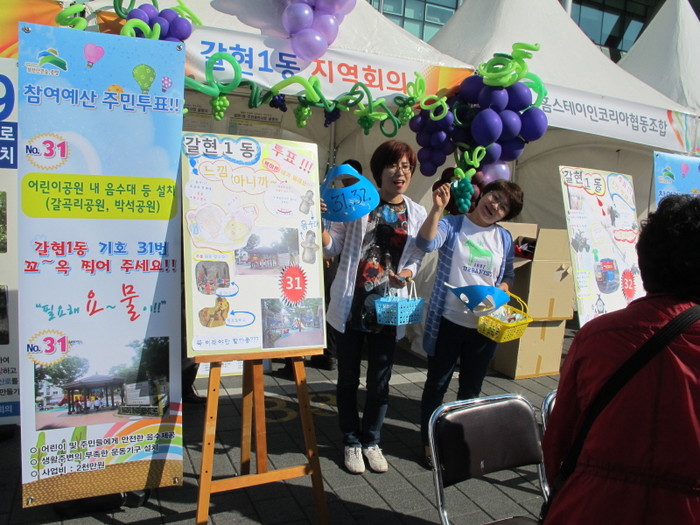 [시민일보]서울 은평구는 지난 9일 구청 광장에서 주민들이 직접 32개의 사업순위를 투표하는 '2014 은평구 참여예산 주민총회'를 열었다. 사진은 구청광장에서 사업설명을 하고 있는 주민들의 모습.