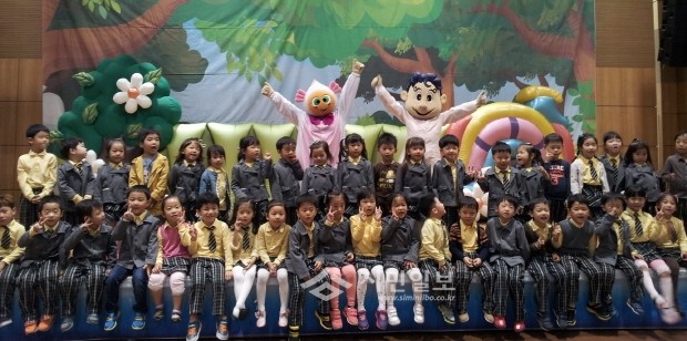 지난 14일 평택시 송탄보건소는 지역내 어린이집 원아 500여명과 보육교사들에게 이해하기 쉽도록 인형극을 통해 아토피 관련 정보를 전달했다. 사진은 인형극 관람을 마친 후 기념촬영을 하는 어린이집 원아들의 모습.
