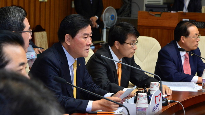 5일 오전 서울 여의도 국회 245호 회의실에서 열린 새누리당 국정감사 초반대책회의에서 최경환 원내대표가 법무부가 통합진보당에 대한 정당해산 심판을 청구할지를 검토 관련 적절하다."고 이야기하고 있다.
