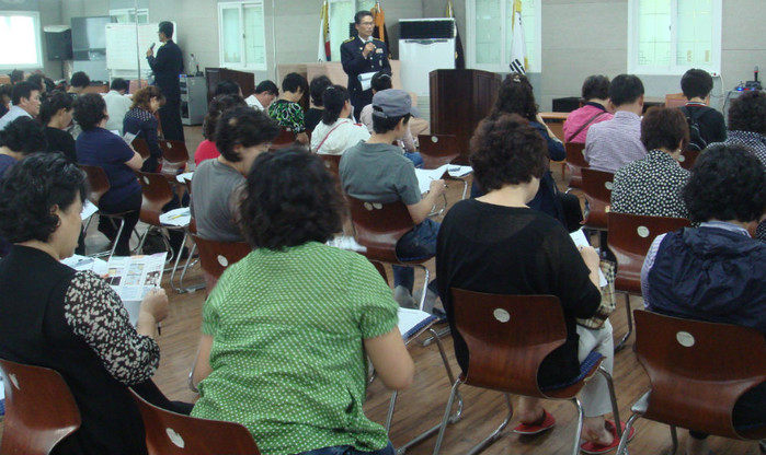 | ▲ 계양서 직원이 주민들을 대상으로 범죄예방요령 홍보를 하고 있다. | ||