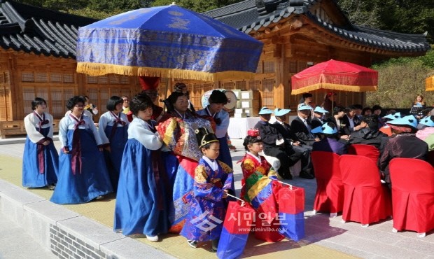 [시민일보]지난 17일 연천군다문화가족지원센터 주관으로 지역내 미혼례 다문화가정 3쌍(베트남, 중국, 태국)의 합동결혼식이 열렸다. 사진은 한국 전통혼례로 입장하는 신부의 모습.