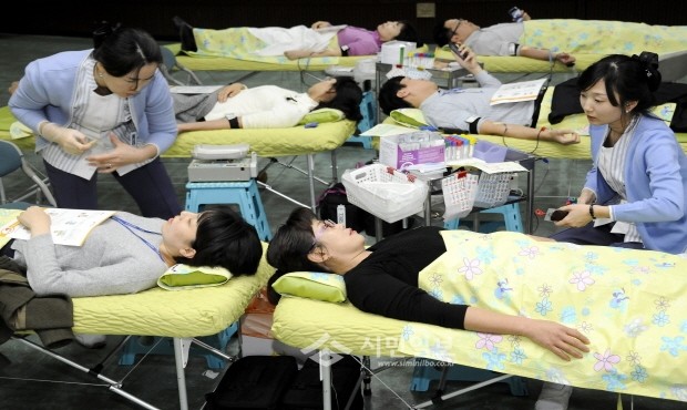 [시민일보]지난 17일 서울 광진구 구청대강당에서 '이웃사랑을 위한 작은 실천, 광진구 직원 사랑의 헌혈 운동' 행사를 실시해 구청 직원, 청사 방문 민원인 등 80여명이 헌혈에 참여했다. 사진은 헌혈에 참여하고 있는 구청 직원들의 모습.
