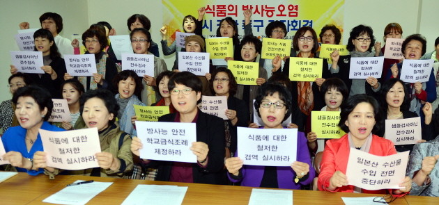 광주·전라·제주권 YWCA(서부지역 YWCA)가 21일 오후 광주 북구 광주YWCA에서 기자회견을 열고 "일본산 식품의 안전에 대한 보장이 이루어질때까지 일본산 수산물 수입을 중단해야 한다"고 촉구하고 있다.