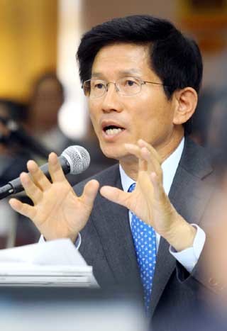 22일 오전 경기 수원 경기도청에서 열린 국회 국토교통위원회의 경기도에 대한 국정감사에서 김문수 경기지사가 위원들의 질의에 답변하고 있다.