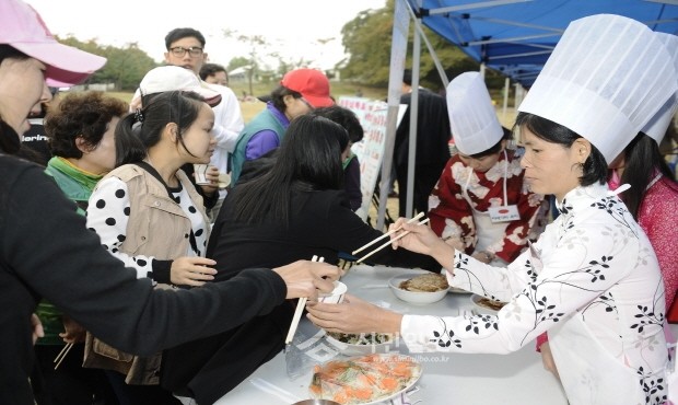 지난 24일 서울 광진구는 어린이대공원 구의문에서 다문화 결혼이주여성, 새마을부녀회원, 인근 지역주민 등 200여명이 참여해 '다문화가족과 함께하는 음식페스티벌 및 체육대회'를 열어 음식을 통해 서로의 문화를 이해하고 서로 화합하는 시간을 보냈다. 사진은 결혼이주여성들이 직접 모국의 음식을 만들어 인근주민들에게 나눠주고 있는 모습.