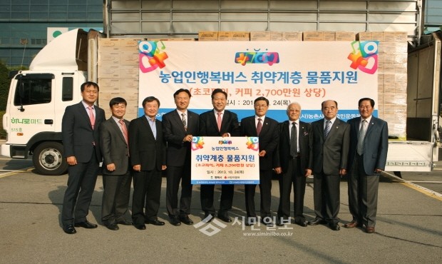 최근 농업중앙회 평택시지부는 평택시청을 방문해 취약계층들에 전달해달라며 2700만원 상당의 물품을 기증했다. 시는 기증받은 물품들을 지역내 500여개 경로당에 전달한다. 사진은 전달식 후 기념촬영 하는 권준학 농협중앙회 평택시지부장(왼쪽에서 네번째)과 김선기 평택시장(왼쪽에서 다섯번째)의 모습.