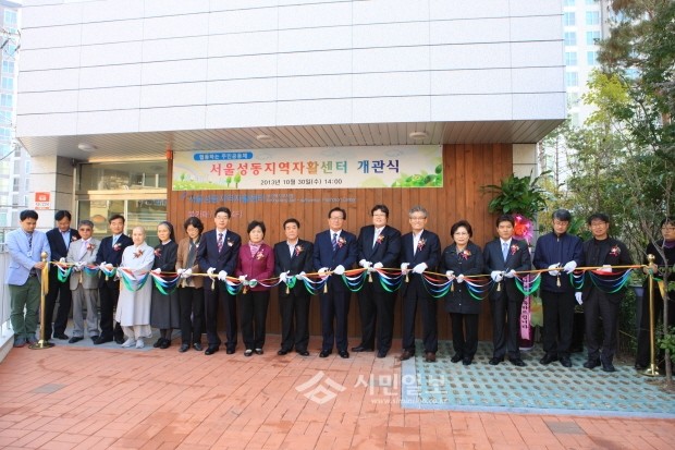 [시민일보]지난달 30일 서울 성동구가 저소득층 자활사업 역량을 강화하기 위해 서울시 최초로 건립한 성동지역자활센터의 개관식을 했다. 사진은 개관식에 참여한 고재득 성동구청장 외 참여자들이 테이프 커팅식을 하고 있는 모습.