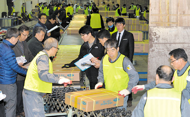 2014학년도 대학수학능력시험을 3일 앞둔 4일 오전 중부지역의 한 인쇄업체에서 직원들이 전국의 시험지역으로 배포될 수능 문제지와 답안지를 분류하고 있다.