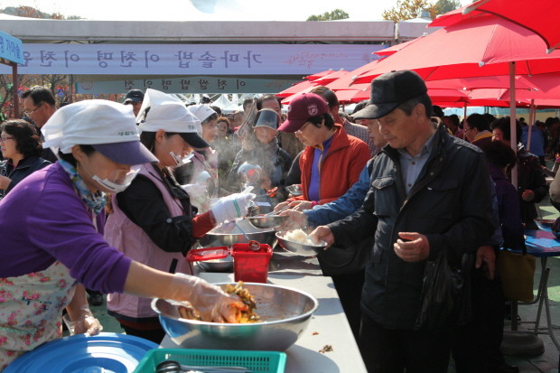 [시민일보]경기 이천시의 '제15회 이천쌀문화축제'가 지난 3일 폐막했다. 5일 동안 축제장을 찾은 관광객은 약 51만명이었으며, 햅쌀 판매는 지난해보다 11.4% 증가한 5억5800만원의 매출을 올렸다. 사진은 행사장에서 가마솥밥 시식을 하고 있는 참가자들의 모습.