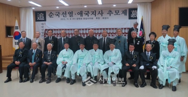 광복회 화성시지회는 지난 6일 화성시 보훈회관에서 ‘제6회 순국선열 및 애국지사 추모제’를 열어 광복을 위해 순국한 애국지사의 영혼을 위로하는 제사를 올렸다. 사진은 참석자들의 기념촬영 모습.