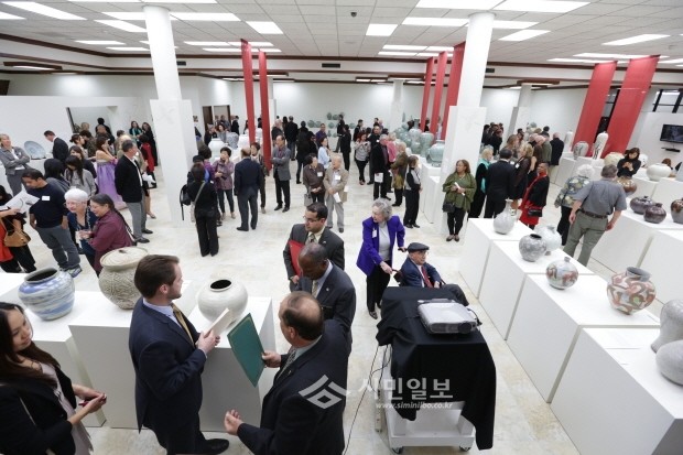 미국 캘리포니아주 포모나시 아모카도자박물관에서 10월12일~12월29일 400여점의 이천도자기 특별전이 열리고 있다. 사진은 지난 9일(현지시간) 관람객들이 도자기를 감상하고 있는 모습.