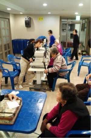 지난 15일 인천 남동구 구월2동은 연수구에 소재한 안과 병원과 협조해 구월 힐스테이트 1단지 경로당에서 '찾아가는 경로당 무료 안과 검진'을 열어 지역내 노인 70여명이 검진을 받고, 눈 건강관리에 대한 교육도 받았다. 사진은 노인들이 시력검진을 받고 있는 모습.