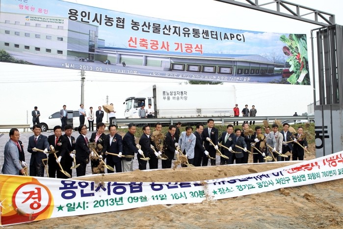지난 9월11일 원삼농협에서 지역농산물의 유통환경 혁신을 위해 ‘농산물 산지유통센터' 건립 기공식을 가졌다. 농산물 산지유통센터(APC)는 오는 2014년 2월 완공 예정이며, 국비·지방비 포함 39억원으로 처인구 원삼면 좌항리 761번지 등 2필지에 부지면적 7406㎡, 건축면적 2223㎡ 규모로 들어선다. 김 시장은 이날 기공식에서 “유통센터는 지역내에서 생산되는 농산물의 집하에서부터 선별·저장·출하까지 모두 원스톱으로 처리할 수 있는 자동화 시설을 갖추게 된다"며 ”농민은 생산에만 전념하고 유통과 판매는 ‘농협’이 책임을 전담하는 시스템을 정착시켜 농업인들의 소득 증대에 큰 기여를 할 것으로 생각한다“고 말했다.