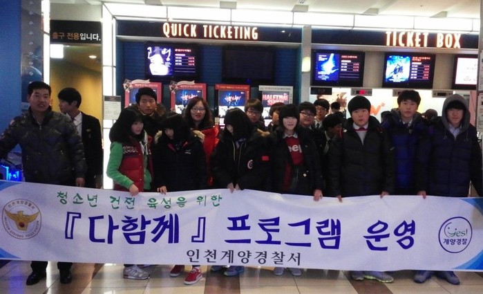 | ▲ 청소년 선도프로그램 ‘다함께’참가자들이 기념촬영을 하고 있다. | ||