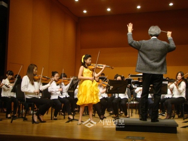 지난 23일 인천학생교육문화회관 싸리재홀에서 '청소년 오케스트라 제4회 정기연주회'가 열렸다. 이날 연주회에서는 초등학생들이 '에그몬트' '비발디의 사계-겨울’ 등 유명곡들이 연주했다. 사진은 '부르흐의 바이올린 협주곡' 제1번 사단조의 연주 모습.