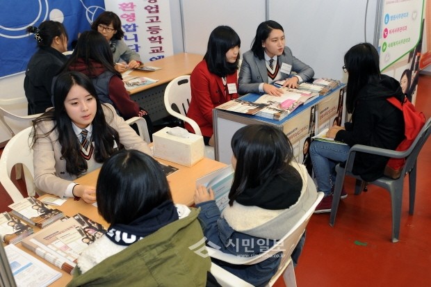 [시민일보]지난 23일 서울 동대문구는 구청에서 총 11개 학교가 학생·학부모들에게 학교를 홍보하고 진학상담을 실시하는 '2104 고교진학 정보 박람회'를 열었다. 사진은 진학상담을 받고 있는 학생·학부모들의 모습.