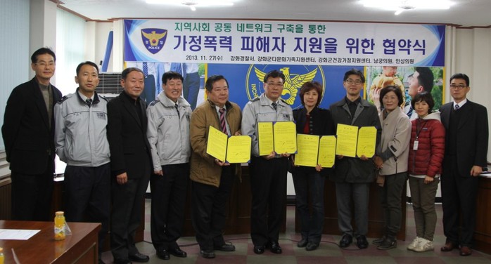 이를 위해 강화서는 27일 회의실에서 범죄로부터 안전한 사회 환경을 조성하고자 강화건강가정지원센터와 강화다문화가족지원센터, 남궁의원, 인성의원 간 피해자 지원을 위한 업무협약을 체결했다.
