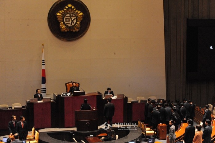 결국 민주당 의원들은 강하게 반발하면서 표결에 불참했고 창당 작업을 가시화한 무소속 안철수 의원은 표결에 참여해 이같이 통과했다.