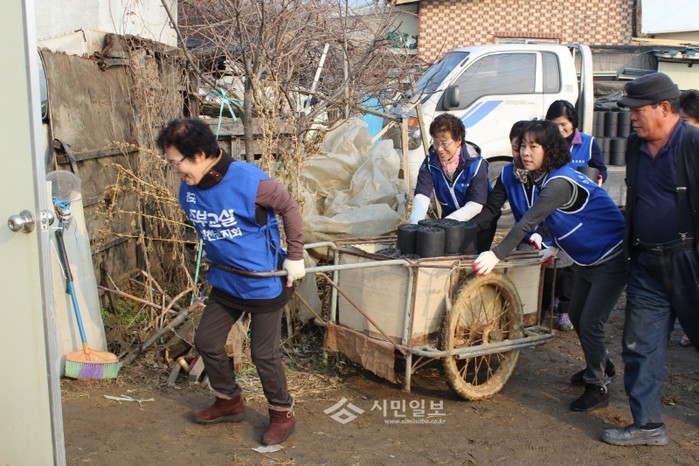 [시민일보]전국주부교실연천군지회는 지난 3일 k-water 임진강건설단과 함께 연탄지원 자원봉사활동을 펼쳐 경기 연천군 지역내 소외계층 10가구에 각각 연탄 300장을 배달했다. 사진은 연탄을 나르고 있는 전국주부교실연천군지회 회원들의 모습.
