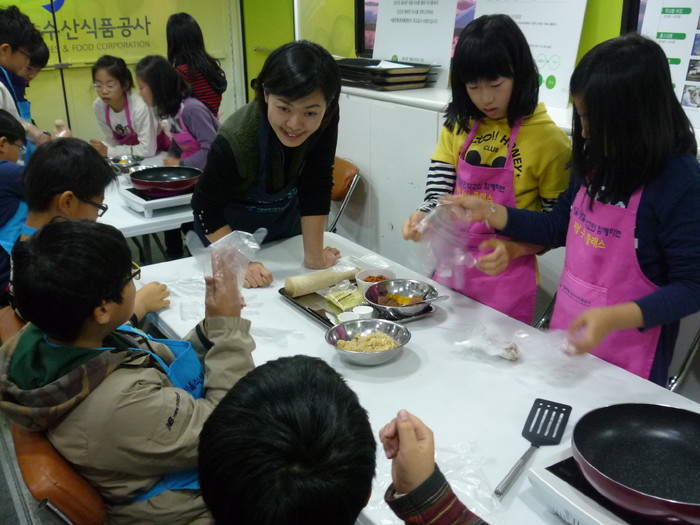 [시민일보]서울 은평구는 최근 녹번초등학교 4학년 학생을 대상으로 트럭을 개조해 만든 이동식 교육차량에서 어린이들의 식생활 교육 프로그램인 '달리는 쿠킹스쿨' 을 열었다. 사진은 참가 어린이들이 강사의 지도를 받아 직접 현미고구마 피자를 만드는 모습.