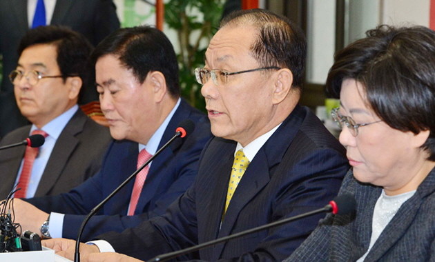 5일 오전 서울 여의도 국회 새누리당 대표실에서 열린 최고위원회의에서 황우여 대표가 국정원 개혁특위 관련 이야기하고 있다.