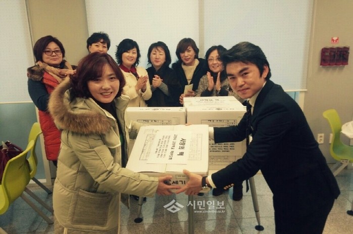 경기 고양시 고등학교 학부모회가 지난 5일 다가올 새해를 맞아 KB국민은행 배움누리를 포함한 일산구 3곳, 덕양구 2곳의 아동·청소년기관에 170Kg의 떡국 떡을 전달하는 '사랑의 떡 나눔 행사'를 진행했다. 사진은 행사에 사용할 떡을 기증하는 모습.