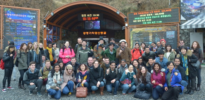 최근 외국인 관광객들이 경기 광명시를 찾아 가학광산동굴과 광명전통시장을 방문해 자국에서 보기 어려운 색다른 관광지와 음식 등을 경험했다. 사진은 가학광산동굴 앞에서 기념촬영하는 외국인 관광객들의 모습.