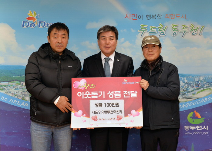 지난 9일 경기 동두천시는 서울우유동두천축산계로부터 연말을 맞아 어려운 이웃들을 돕기 위한 성금 100만원을 기부 받았다. 시는 이번에 받은 기부금으로 쌀, 연탄 등의 생필품을 구입해 지역의 어려운 이웃들에게 전달할 방침이다.