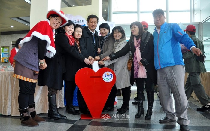 [시민일보]지난 7일 경기 남양주체육문화센터 실내체육관에서는 'The 멋진당신!'이라는 주제로 '2013자원봉사자의 날 기념 및 자원봉사대 축제'가 열렸다. 이날 축제에서는 우수봉사단체 23곳과 34명의 자원봉사자들에 대한 시상식과 자원봉사자 시간 인증 300~1만시간 이상인 937명에게 마일리지 인증서와 배지가 지급됐다. 사진은 참가자들이 기부 모금함에 모금하는 모습.
