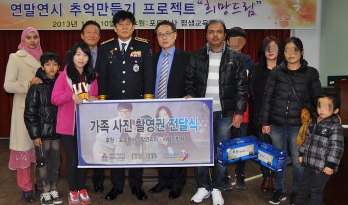 이날 원미서는 포도학사평생교육원와 공동으로 지역 내 북한이탈주민 및 다문화 가정 100여 가구에 가족사진 무료 촬영권 100매(1매당 15만원, 약1,500만원 상당)와 건강음료 100박스(약350만원 상당)를 전달하고 격려했다.