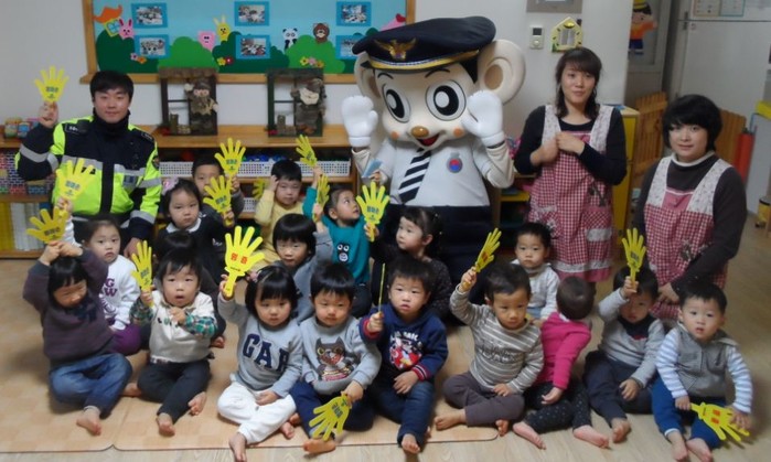 이날 교육에는 홍보담당 교통경찰관이 둥지어린이집 원생 25여명을 대상으로 무단횡단으로 인한 교통사고예방 및 어린이 통학버스에서 안전하게 내리기, 횡단보도 건널 때 좌, 우 살피면서 안전하게 건너기, 안전띠착용하기 등 교통안전교육을 했다.