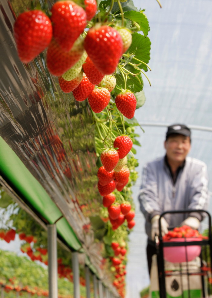 충남 보령지역의 55농가(12.6ha)에서 생산된 친환경 ‘설향’ 딸기 수확이 한창인 가운데 12일 임현순씨(66·웅천읍 성동리)의 비닐하우스에 싱싱하고 먹음직스러운 딸기가 주렁주렁 열렸다.(사진= 김세준 제공)