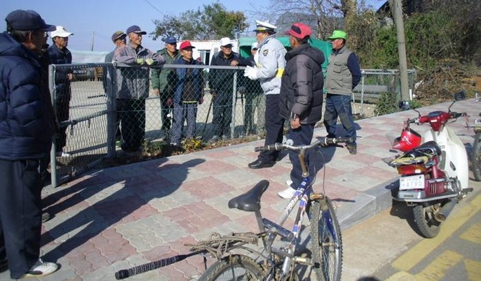 | ▲ 강화서 직원이 교동면 주민들을 대상으로 교통사고 예방을 위한 홍보활동을 펼치고 있다. | ||