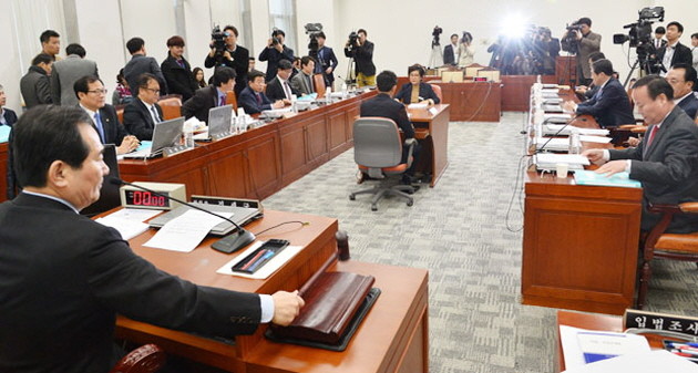 18일 오전 서울 여의도 국회에서 열린 국가정보원등 국가기관의 정치적 중립성 강화를 위한 제도개선 특별위원회 전체회의에서 정세균 위원장이 의사봉을 두드리고 있다.