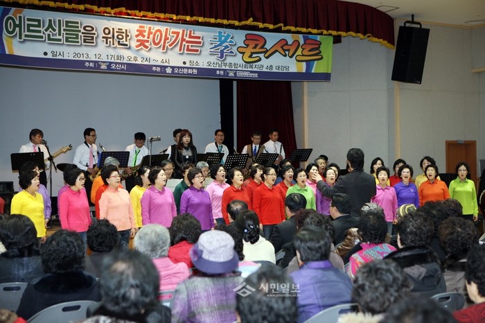 [시민일보]지난 17일 오산남부종합사회복지관에서 경기 오산시가 주최하고 오산문화원이 주관한 ‘어르신들을 위한 찾아가는 효 콘서트’가 열렸다. 사진은 '어른신들을 위한 찾아가는 효 콘서트'에서 실버합창단이 오프닝 공연을 하는 모습.