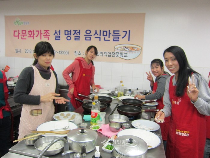 [시민일보]영등포구(구청장 조길형)는 지난 19일 신길동 한국조리직업전문학교에서 지역내 중국·베트남·필리핀 등 다양한 국적을 가진 결혼 이민자 30명을 대상으로 설맞이 떡국 만들기 체험행사'를 실시했다. 체험행사에서 참가자들은 강사의 떡국과 완자전 만들기 시범을 본 후 직접 만드는 실습시간을 가졌다.