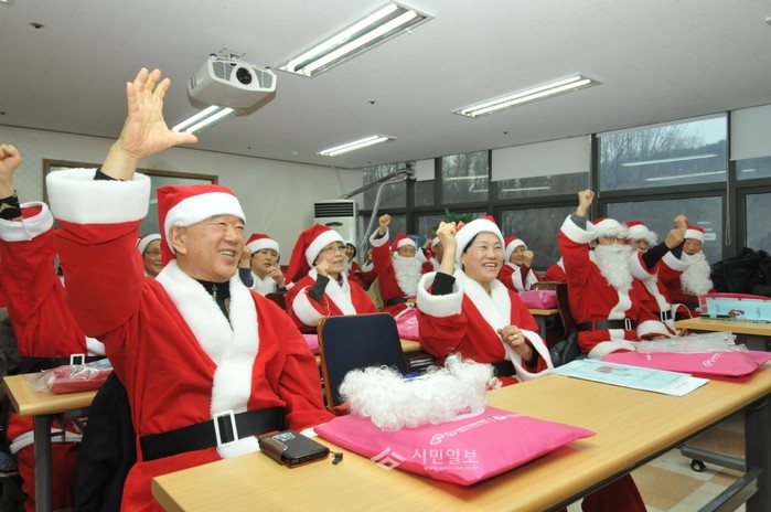 [시민일보]서울 양천구 자원봉사센터는 지난 17일 산타학교 교육을 마친 지역내 60세 이상 할아버지, 할머니를 대상으로 산타학교 수료식을 가졌다. 이들은 24일까지 지역내 어린이집에 파견돼 산타로 활동하게 된다. 사진은 수료식에 참여한 자원봉사자들의 모습.