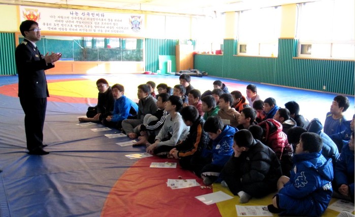 강의를 맡은 아동청소년계 김주화 경위는 “운동부라는 특수한 단체 특성으로 인해 기합을 통해 규율을 잡는 다는 명목으로 폭력행위를 하는 것을 예방하기위해 운동부 학생들 대상으로 학교폭력 예방교육을 실시하게 됐다”고 말했다.