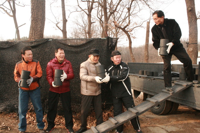 지난 7~8일 경기 남양주시노인복지관에서는 홀몸노인 61가구를 대상으로 홀몸노인들의 따뜻한 겨울나기를 위한 난방지원 활동을 실시했다. 사진은 지난 8일 시니어악단전문자원봉사단이 연탄을 나르고 있는 모습.