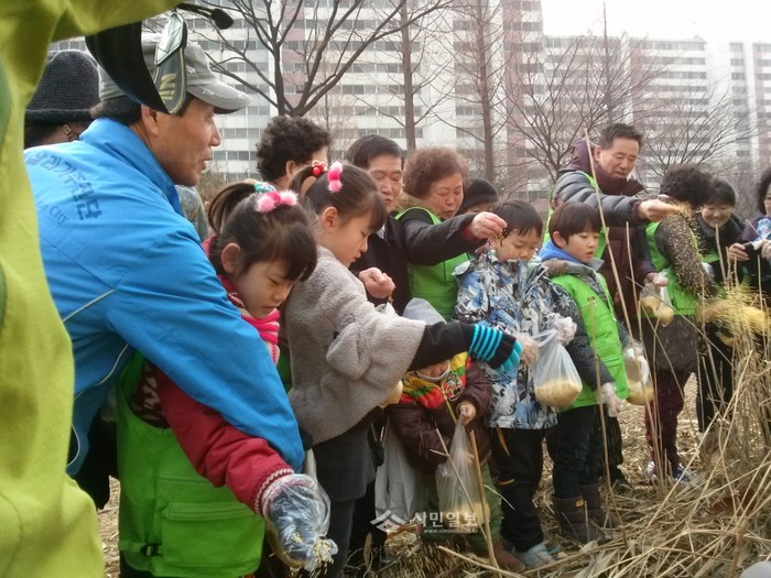 [시민일보]지난 12일 인천 부평구와 굴포천네트워크가 함께 겨울철 먹이가 없어 굶주리는 야생동물들을 위해 먹이주기 활동을 벌이고 쓰레기를 치우는 등의 환경정화활동을 실시했다. 사진은 굴포천에서 야생동물의 먹이를 뿌리는 주민들의 모습.