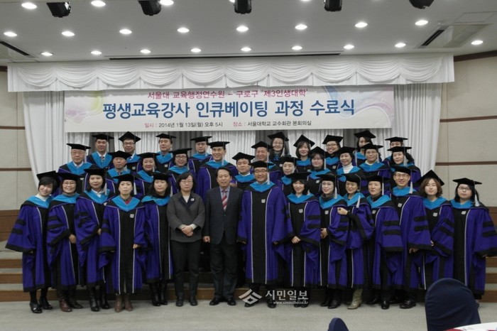[시민일보]서울 구로구는 지난 13일 교수설계, 효과적인 강의기법 등 평생교육 현장에서 강의할 수 있는 전문강사 양성을 위한 '제3인생대학 평생교육강사 인큐베이팅 과정 수료식'을 열었다. 사진은 수료자들이 수료식 후 기념촬영하는 모습.